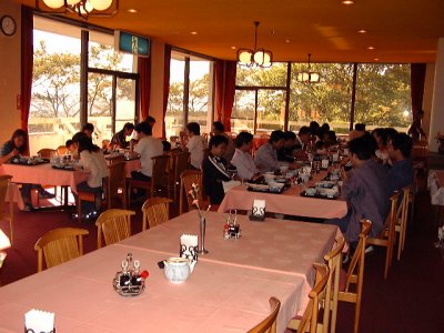 2日目の朝です。みんなで朝飯食べてます。