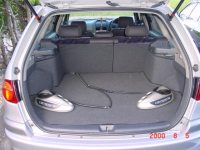 | Sinozaki(リーダー)のコメント ラゲッジのスピーカーに何か独創的な物を感じるのは私だけでしょうか(^^ シルバーボディーにシルバースピーカー、合ってますね(^^ でも、エキマグの爆音でスピーカ音が消されない? |